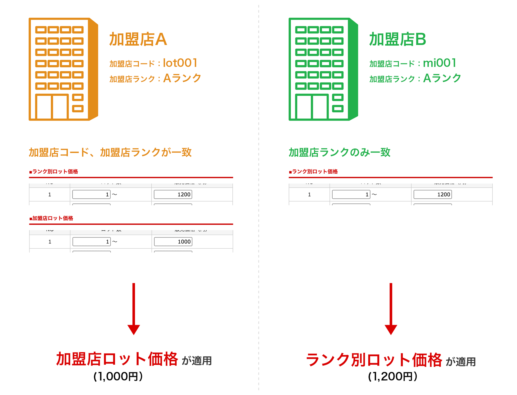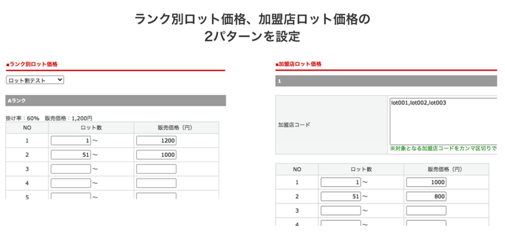 - ランク別ロット価格 ・・・ Aランクの加盟店に対して設定