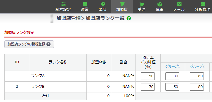 - 加盟店管理>加盟店ランク管理に設定した掛け率はどうなる?併用はできるのか。